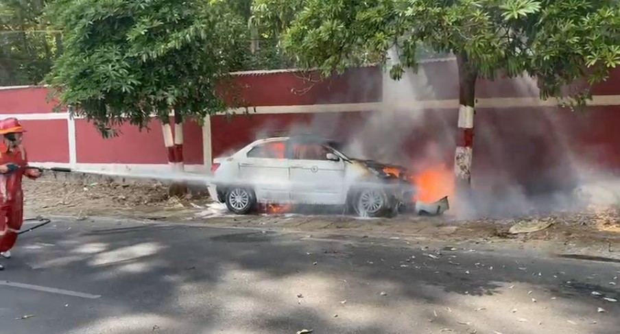 देहरादून में चलती सड़क पर आग का गोला बनी स्विफ्ट