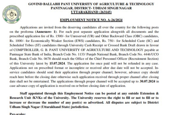 आवेदन पत्र, फीस से संबंधित पूरी जानकारी और शैक्षणिक योग्यताएँ आदि की जानकारी विश्वविद्यालय की वेबसाइट www.gbpuat.ac.in पर अपलोड कर दी गयी है। उक्त वेबसाइट का लिंक नीचे दिया गया है।