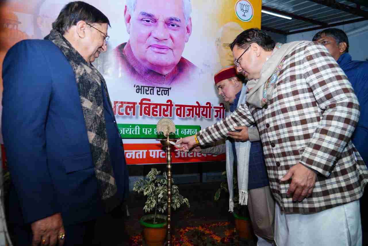 मुख्यमंत्री पुष्कर सिंह धामी ने आज भाजपा प्रदेश कार्यालय, देहरादून में भारत रत्न, पूर्व प्रधानमंत्री स्वर्गीय अटल बिहारी वाजपेई की जयंती की पूर्व संध्या पर आयोजित कार्यक्रम में प्रतिभाग किया। इस दौरान मुख्यमंत्री ने दीप प्रज्वलित कर उन्हें श्रद्धासुमन अर्पित किए।