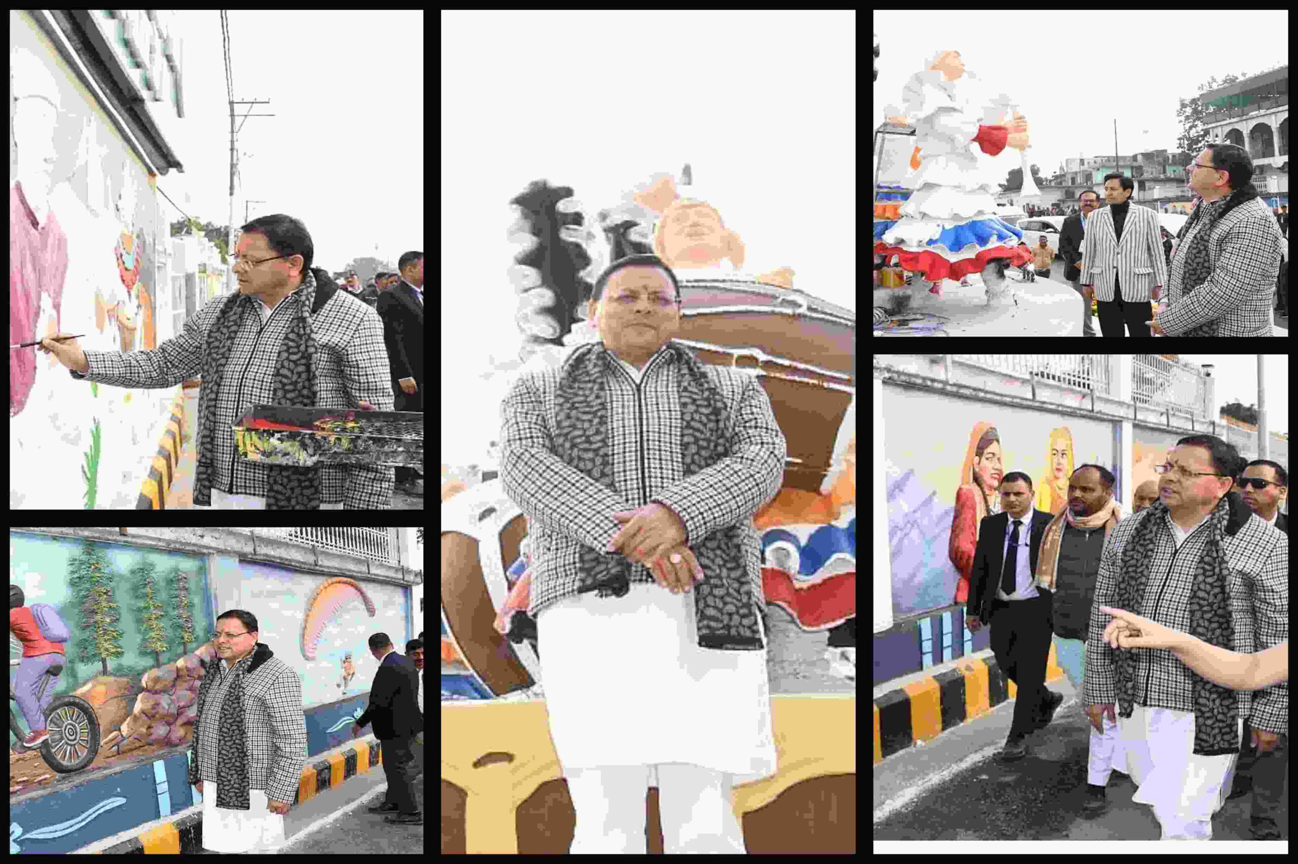 हल्द्वानी भ्रमण पर पहुंचे सीएम धामी ने नैनीताल रोड पर काठगोदाम से नरीमन चौराहे तक पैदल चलकर सड़क का निरीक्षण किया। सड़क के दोनों ओर बनाए गए भित्तिचित्र व पेंटिंग को नजदीक से देखा।