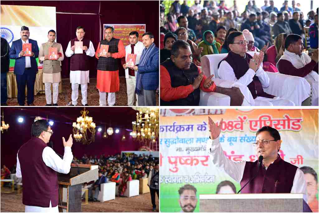 मुख्यमंत्री पुष्कर सिंह धामी ने रविवार को प्रेमनगर, सुद्धोवाला में प्रधानमंत्री नरेन्द्र मोदी के ‘मन की बात’ कार्यक्रम का 108वां संस्करण सुना। इस अवसर पर उन्होंने लेखक हरि सिंह बिष्ट द्वारा लिखी गई पुस्तक ’मन की बात-सकारात्मक संवाद से सशक्त भारत’ का विमोचन भी किया। इस पुस्तक में प्रधानमंत्री के मन की बात कार्यक्रम के 75वें संस्करण से 99वें संस्करण तक विस्तार से वर्णन किया गया है।