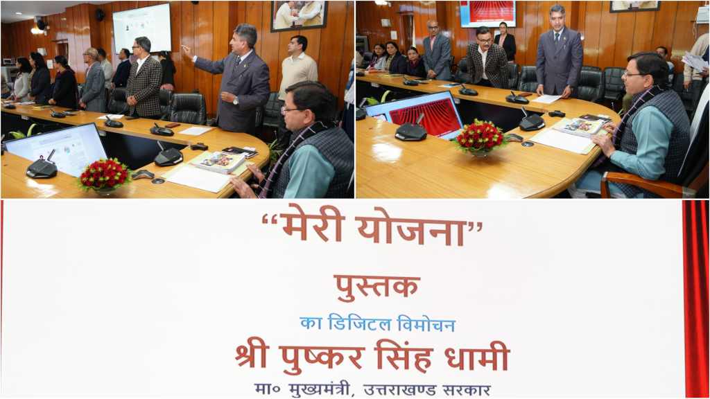 मुख्यमंत्री पुष्कर सिंह धामी ने सोमवार को सचिवालय में कार्यक्रम क्रियान्वयन विभाग,उत्तराखण्ड शासन द्वारा तैयार की गई पुस्तक ‘‘ मेरी योजना’’ का विमोचन ई0 बुक के रूप में किया।