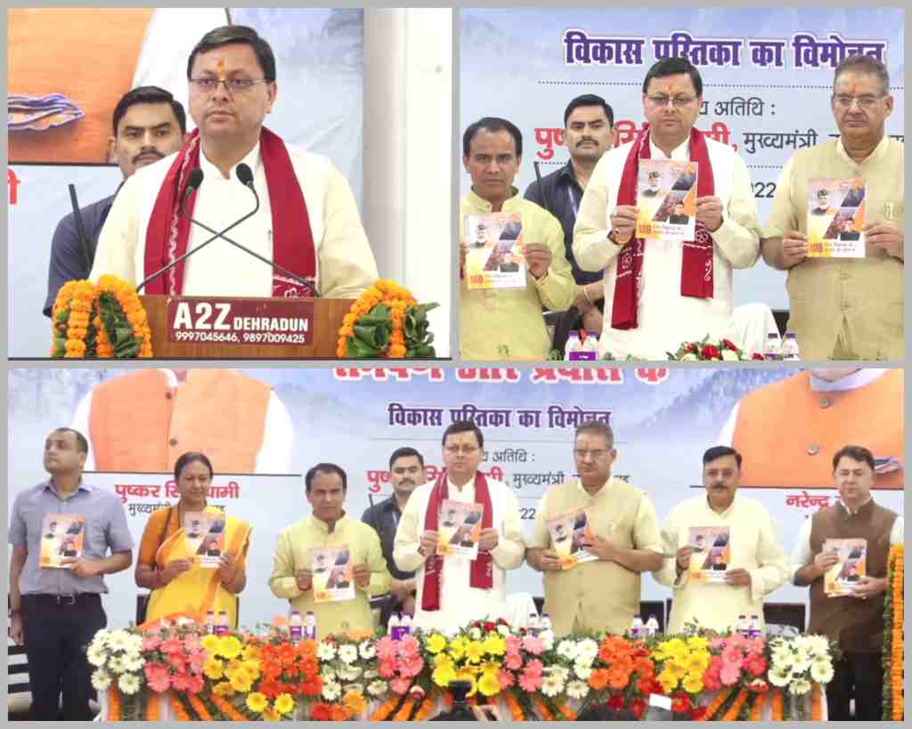 मुख्यमंत्री पुष्कर सिंह धामी ने गुरुवार को मुख्य सेवक सदन, मुख्यमंत्री आवास, देहरादून में सरकार के 100 दिन पूर्ण होने के अवसर पर सूचना एवं लोक संपर्क विभाग द्वारा आयोजित कार्यक्रम में प्रतिभाग करते हुए *100 दिन विकास के, समर्पण और प्रयास के , विकास पुस्तक* का विमोचन किया।