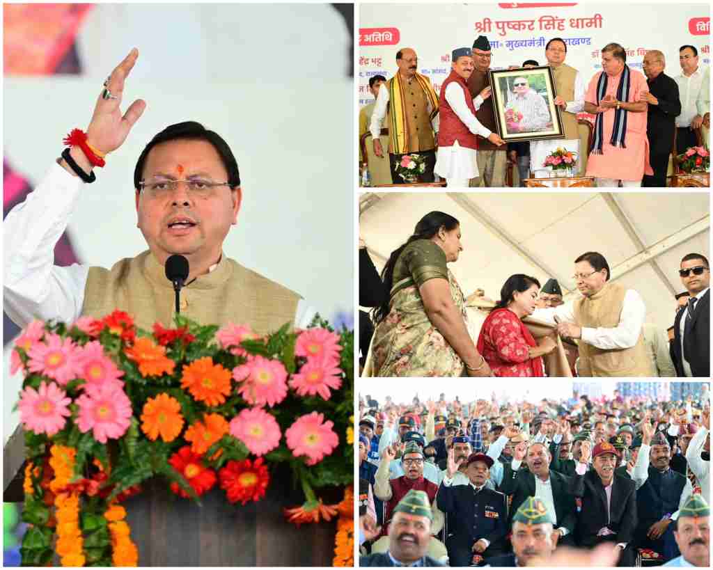 मुख्यमंत्री ने उपस्थित पूर्व सैनिकों पर पुष्पवर्षा कर राज्य निर्माण व राष्ट्र सेवा में उनके योगदान के लिये सभी का अभिनन्दन किया। उन्होंने कहा कि उत्तराखंड का हर परिवार गर्व से कह सकता है कि उसके घर से कोई न कोई भारत माता की सेवा में समर्पित है। मुख्यमंत्री ने कहा कि देवभूमि उत्तराखंड वास्तव में वीरभूमि है, जहाँ की माटी में ही राष्ट्रभक्ति और बलिदान की भावना रची-बसी है।