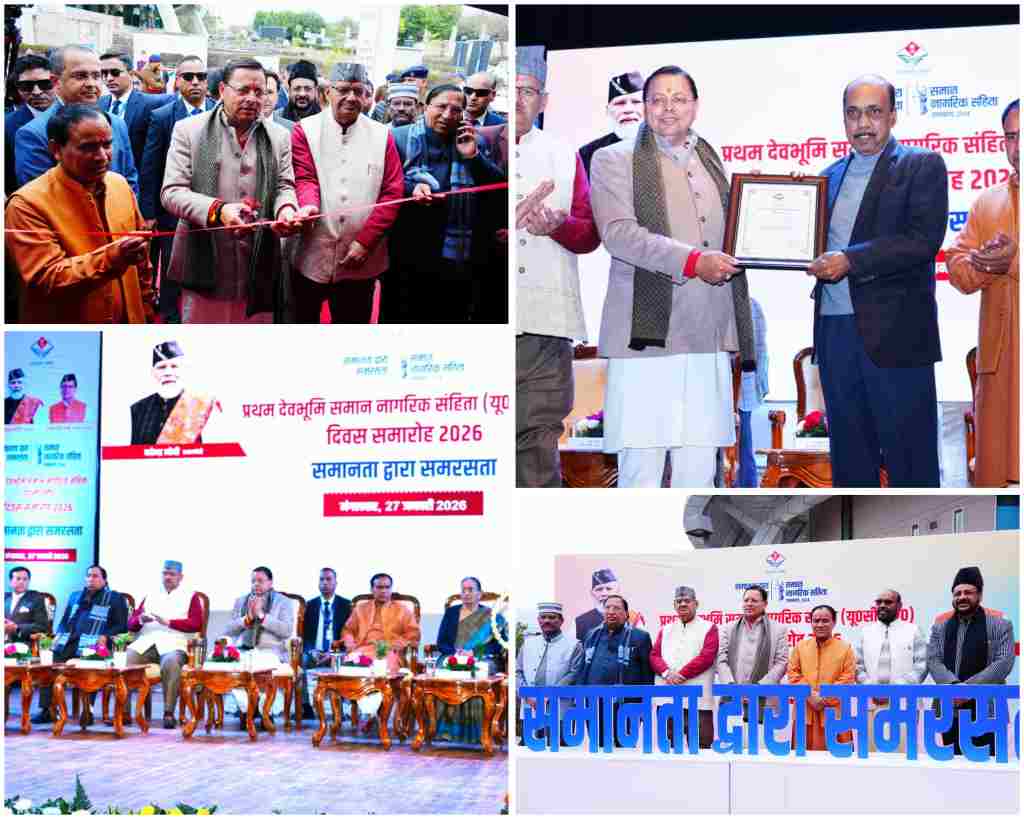 मुख्यमंत्री पुष्कर सिंह धामी ने मंगलवार को हिमालयन कल्चरल सेंटर गढ़ी कैंट में आयोजित प्रथम “समान नागरिक संहिता दिवस” को संबोधित किया। इस मौके पर उन्होंने समान नागरिक संहिता को तैयार करने वाले कमेटी के सदस्यों, कुशल क्रियान्वयन करने वाले प्रशासनिक अधिकारियों और पंजीकरण में योगदान देने वाले वीएलसी को भी सम्मानित किया। कार्यक्रम के दौरान मुख्यमंत्री ने यूसीसी पर आधारित फोटो प्रदर्शनी का अवलोकन भी किया।