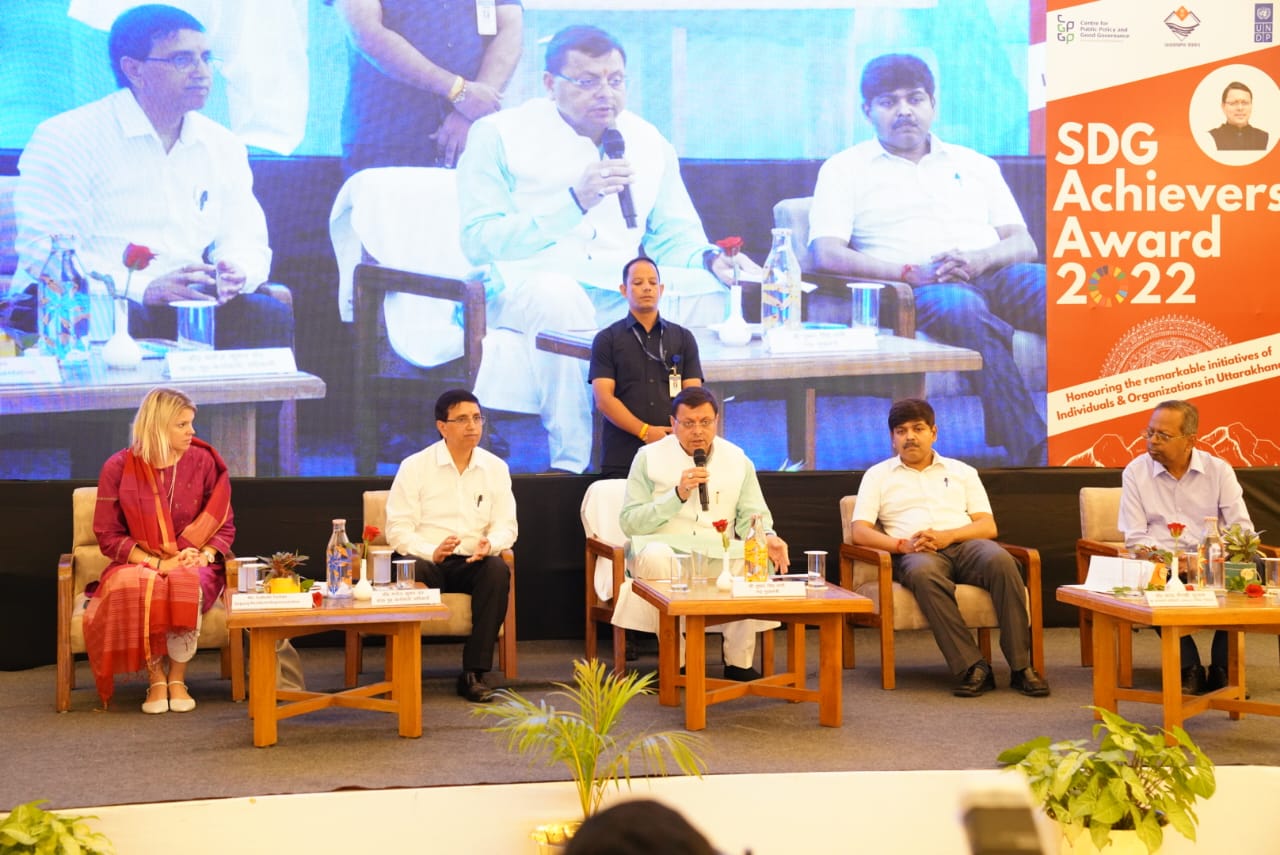 मुख्यमंत्री पुष्कर सिंह धामी ने कहा कि विकास के लक्ष्य को हासिल करने के लिये सभी को सम्मिलित रूप से प्रयास करने होंगे। आत्मनिर्भर उत्तराखण्ड बनाने के लिए सबको समन्वित प्रयास करने होंगे। बहुत सी संस्थाएं और व्यक्ति सामाजिक, आर्थिक व पर्यावरण के क्षेत्र में बेहतर काम कर रहे हैं। ये सभी राज्य के विकास के ब्राण्ड एम्बेसेडर हैं। उत्तराखण्ड को श्रेष्ठ राज्य बनाने के लिये हम सभी को मिलकर आगे बढ़ना है। इकोलॉजी और इकोनोमी में संतुलन बनाकर विकास जरूरी है। राज्य में सतत विकास लक्ष्य में बेहतर कार्य हो रहे हैं। एसडीजी इंडेक्स में उत्तराखण्ड को अग्रणी राज्यों की श्रेणी में लाने के लिए और प्रयासों की भी उन्होंने जरूरत बताई।