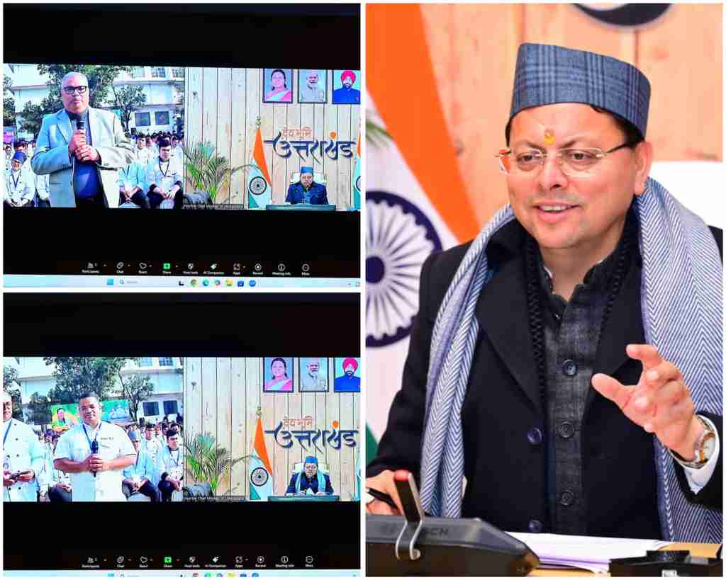 मुख्यमंत्री पुष्कर सिंह धामी ने आम्रपाली विश्वविद्यालय परिसर से आयोजित श्रीअन्न आधारित “शेफ संवाद” कार्यक्रम में मुख्यमंत्री आवास से वर्चुअल माध्यम से सहभागिता की। इस अवसर पर देश के विभिन्न हिस्सों से जुड़े युवा शेफ, होटल एवं पर्यटन क्षेत्र के विशेषज्ञ, शिक्षाविद् एवं छात्र बड़ी संख्या में उपस्थित रहे। कार्यक्रम का उद्देश्य उत्तराखंड के पारंपरिक व्यंजनों, श्रीअन्न आधारित खानपान और इससे जुड़े रोजगार व पर्यटन अवसरों पर सार्थक संवाद स्थापित करना रहा।