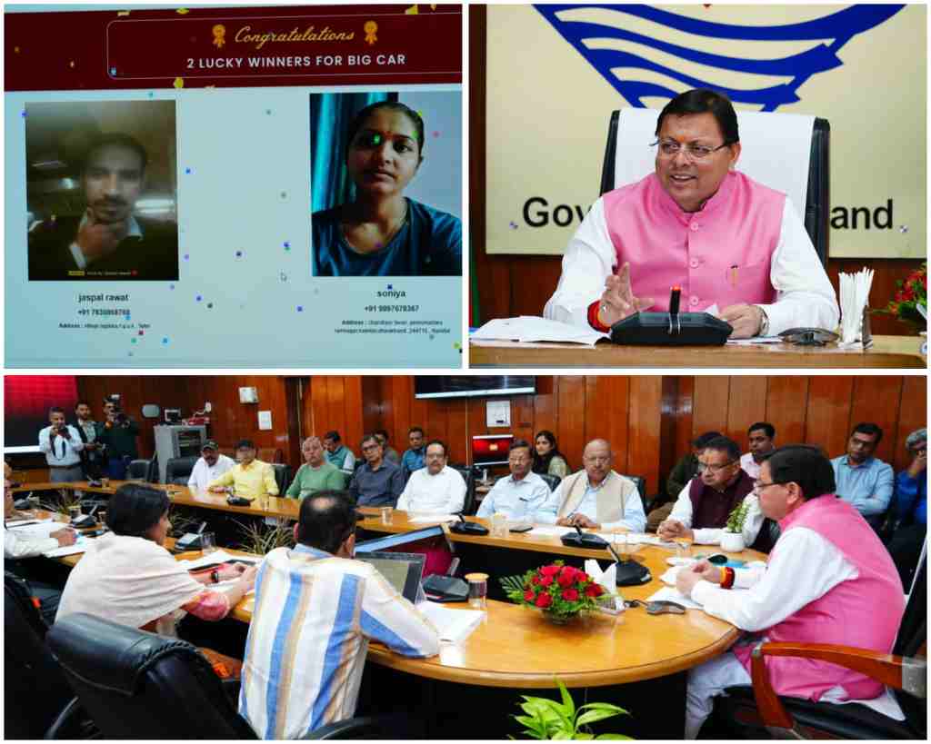 मुख्यमंत्री पुष्कर सिंह धामी ने शुक्रवार को सचिवालय में ‘बिल लाओ, ईनाम पाओ’ के अंतर्गत मेगा लकी ड्रॉ का शुभारंभ किया। राज्य कर विभाग, उत्तराखंड द्वारा आयोजित इस कार्यक्रम में कुल 1888 लकी ड्रॉ विजेता चुने गए। नैनीताल जनपद की सोनिया और टिहरी जनपद के जसपाल रावत ने प्रथम विजेता के रूप में एक-एक इलेक्ट्रिक कार जीती। मुख्यमंत्री ने दोनों विजेताओं से फोन पर बात कर उन्हें शुभकामनाएं भी दीं। मुख्यमंत्री ने कहा कि ‘बिल लाओ, ईनाम पाओ’ योजना राज्य में जारी रहेगी।