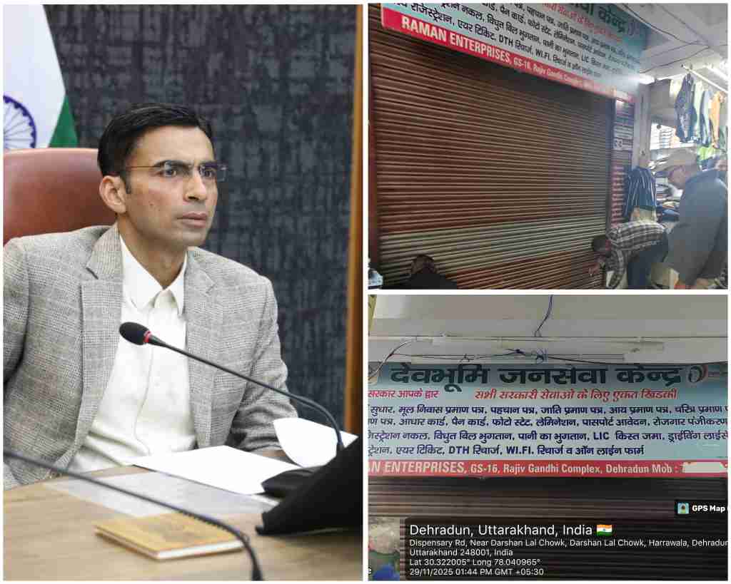 देहरादून दिनांक 30 नवंबर 2025, (सू वि), जिलाधिकारी सविन बंसल के निर्देश पर जिला प्रशासन की टीम ने तहसील परिसर अवस्थित रमन एन्टरप्राईजेज, सीएससी सेंटर में औचक निरीक्षण एवं छापेमारी की कार्रवाई की। यह कार्रवाई उपजिलाधिकारी कुमकुम जोशी के नेतृत्व में की गई।