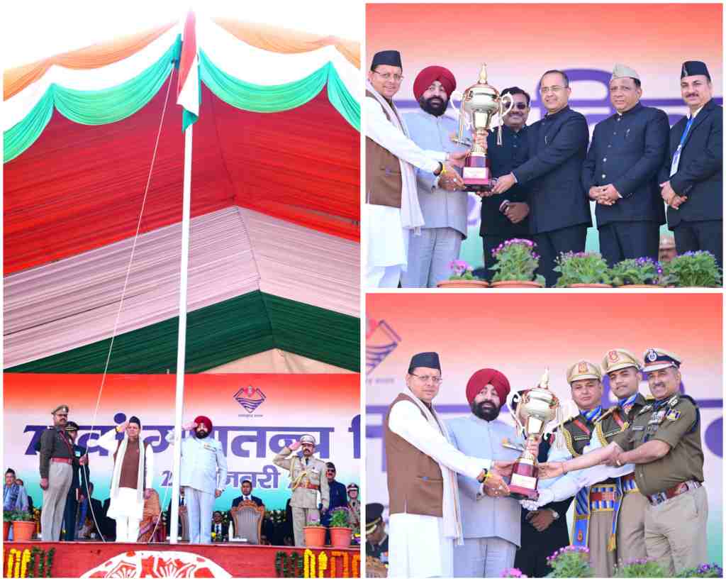 गणतंत्र दिवस के अवसर पर राज्यपाल लेफ्टिनेंट जनरल गुरमीत सिंह (से नि) ने सोमवार को परेड ग्राउंड में आयोजित गणतंत्र दिवस के मुख्य समारोह में राष्ट्रीय ध्वज फहराया और भव्य परेड की सलामी ली। कार्यक्रम में राज्यपाल लेफ्टिनेंट जनरल गुरमीत सिंह (से नि) और मुख्यमंत्री पुष्कर सिंह धामी द्वारा उत्कृष्ट प्रदर्शन करने वाले पुलिस अधिकारियों को पदक अलंकरण कर सम्मानित किया गया साथ विभिन्न अधिकारियों को भी उनकी सराहनीय सेवाओं के लिए सम्मानित किया।