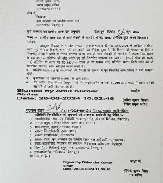 *पीआरडी जवानों के मानदेय में प्रतिदिन 80 रु. की हुई बढ़ोतरी, शासनादेश हुआ जारी*