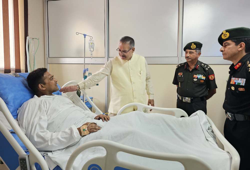 देहरादून, 07 अगस्त। सैनिक कल्याण मंत्री गणेश जोशी ने आज देहरादून स्थित आर्मी अस्पताल पहुंचकर उत्तरकाशी के धराली हर्षिल क्षेत्र में आई दैवीय आपदा के दौरान घायल हुए 14 राजपूताना राइफल्स के लेफ्टिनेंट कर्नल आदर्श टी एवं राइफलमैन केशव सहवाग से भेंट कर उनका हालचाल जाना।