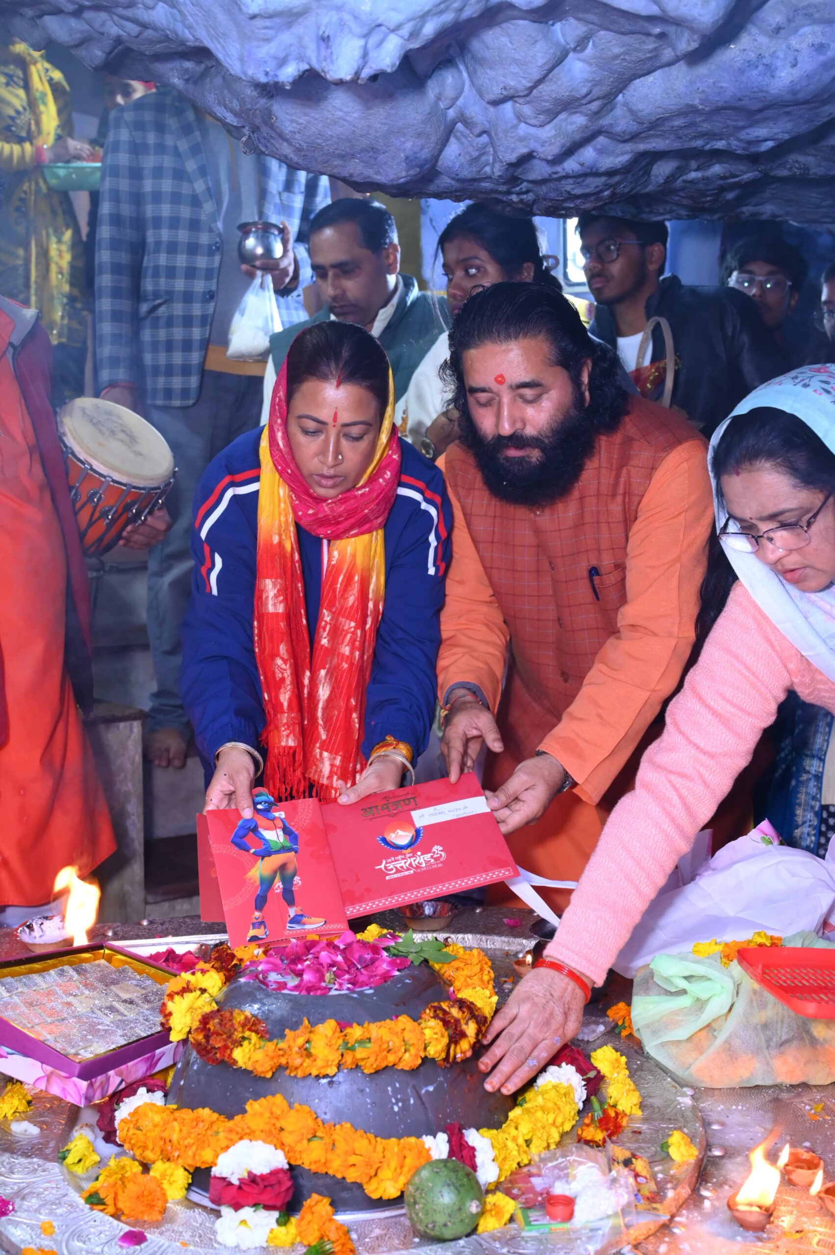 उन्होंने टपकेश्वर महादेव मंदिर के पुजारी दिगंबर भरत गिरी महाराज और पंडित विपिन जोशी और मंदिर में पूजा करने आए श्रद्धालुओं को भी राष्ट्रीय खेलों के लिए निमंत्रित किया।