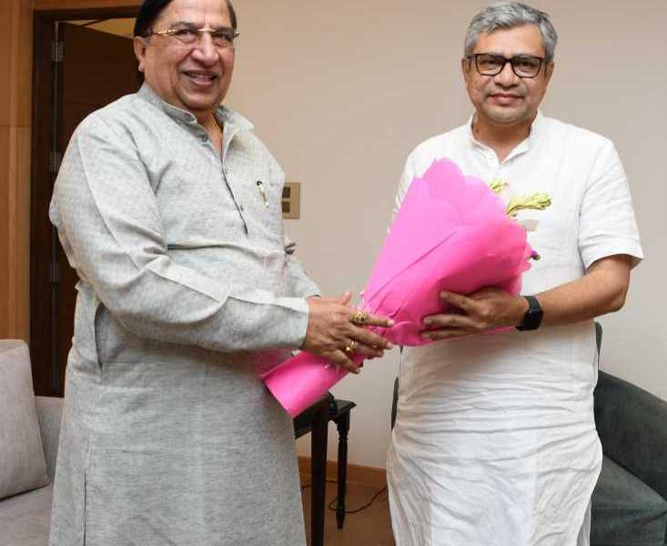 आज नई दिल्ली मे भाजपा राष्ट्रीय सह-कोषाध्यक्ष व सासंद राज्यसभा डा.नरेश बंसल ने केन्द्रीय रेल मंत्री माननीय अश्विनी वैष्णव से शिष्टाचार भेंट की और नव दायित्व की बधाई व शुभकामनाए दी।