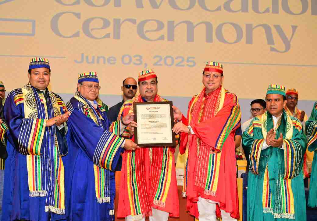 केंद्रीय सड़क परिवहन एवं राष्ट्रीय राजमार्ग मंत्री नितिन गडकरी एवं मुख्यमंत्री पुष्कर सिंह धामी ने मंगलवार को देहरादून स्थित ग्राफिक एरा डीम्ड यूनिवर्सिटी के 12वें दीक्षांत समारोह में प्रतिभाग किया। इस अवसर पर विद्यार्थियों को पीएचडी की उपधियां और डिग्रियां प्रदान की गई। केंद्रीय सड़क एवं परिवहन मंत्री श्री नितिन गडकरी को भी दीक्षांत समारोह में ‘‘डॉक्टरेट ऑफ साइंस’’ की मानद उपाधि से सम्मानित किया गया। इस अवसर पर केंद्रीय मंत्री ने कहा कि देहरादून में जाम की समस्या के समाधान के लिए  राज्य सरकार द्वारा प्रस्ताव भेजे जाने पर सड़क परिवहन मंत्रालय द्वारा सकारात्मक कार्यवाही की जाएगी।