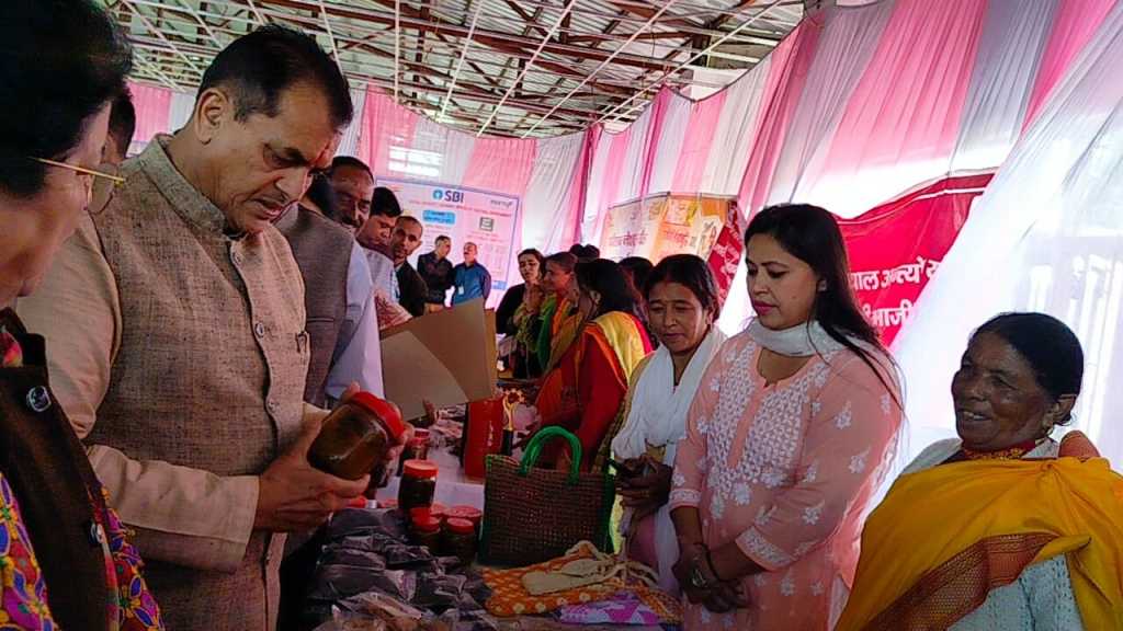 दीन दयाल अन्तोदय योजना-राष्ट्रीय शहरी आजीविका मिशन के अन्तर्गत गठित स्वंय सहायता समूहों के एक दिवसीय मेले के शुभारम्भ अवसर पर शहरी विकास मंत्री ने कार्यक्रम में उपस्थित समूहों की महिलाओं व आम जनमानस को सम्बोधित करते हुए कहा कि टिहरी, रुद्रप्रयाग, पौड़ी व उत्तरकाशी के कुल 548 महिला स्वंय सहायता समूहों की 3800 महिलायें स्थानीय उत्पादों को बढावा देने के साथ-रोजगार पा रही है। उन्होने कहा कि स्थानीय ऑर्गेनिक उत्पादों को बढावा देने के लिए हरिद्वार के बाद पौड़ी में इस प्रकार के शहरी आजीविका मेले का आयोजन किया गया है, जिसे अन्य जनपदों में भी जारी रखा जायेगा। उन्होने केन्द्र सरकार की जनकल्याणकारी योजनाओं का जिक्र करते हुए कहा कि शहरों व कस्बों के स्ट्रीट वेण्डरों के लिए प्रधानमंत्री स्वनिधि जैसी योजना मील का पत्थर साबित हुई है। उन्होने कहा कि आजीविका मेले का उद्देश्य स्थानीय महिलाओं को रोजगार से जोड़ना, स्थानीय उत्पादों को बढावा देने के साथ-साथ उनके विपणन की सुगम व्यवस्था व वैल्यू एडीशन कर अधिक मुनाफा कमाना है।