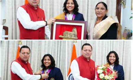 महिला विश्व कप विजेता क्रिकेटर स्नेह राणा ने की मुख्यमंत्री पुष्कर सिंह धामी से शिष्टाचार भेंट मुख्यमंत्री ने स्नेह राणा को...