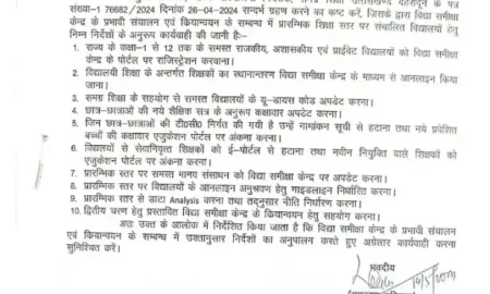 Share Tweet Share Email विद्या समीक्षा केन्द्र के प्रभावी संचालन एवं कियान्वयन के सम्बन्ध में। उपर्युक्त विषयक, राज्य परियोजना निदेशक, समग्र शिक्षा...