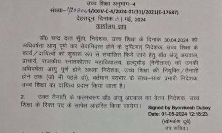 Share Tweet Share Email देहरादून। डॉ. चन्द्र दत्त सूंठा, निदेशक, उच्च शिक्षा के कल 30 अप्रैल को सेवानिवृत्त होने के कारण निदेशक, उच्च...
