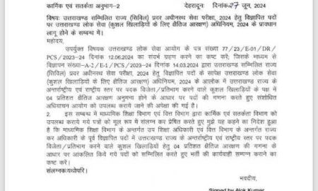 Share Tweet Share Email उत्तराखण्ड सम्मिलित राज्य (सिविल) प्रवर अधीनस्थ सेवा परीक्षा, 2024 हेतु विज्ञापित पदों पर उत्तराखण्ड लोक सेवा (कुशल खिलाड़ियों...