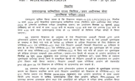 Share Tweet Share Email उत्तराखण्ड सम्मिलित राज्य सिविल / प्रवर अधीनस्थ सेवा प्रारम्भिक परीक्षा-2024 एतद्वारा सूचित किया जाता है कि विज्ञापन...
