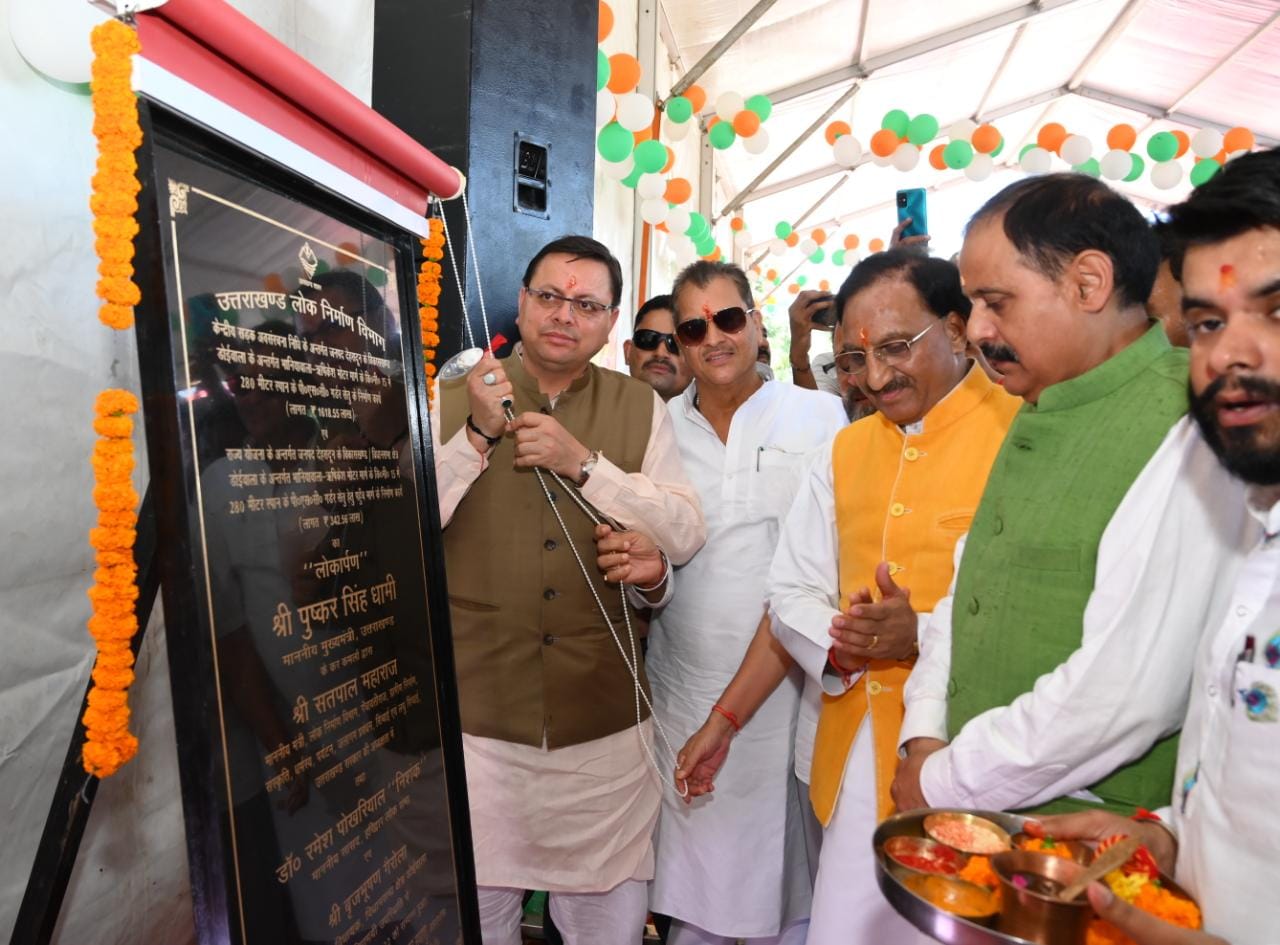 मुख्यमंत्री पुष्कर सिंह धामी द्वारा *केन्द्रीय सड़क अवसंरचना निधि ( ₹ 1618.55 लाख ) के अन्तर्गत जनपद देहरादून के विकासखण्ड डोईवाला के अन्तर्गत भानियावाला ऋषिकेश मोटर मार्ग के कि०मी०15 में 280 मीटर स्पान के पी०एस०सी० गर्डर रानीपोखरी सेतु का निर्माण कार्य व राज्य योजना ( ₹342.56 लाख ) के अंतर्गत उक्त सेतु हेतु पहुंच मार्ग के निर्माण कार्य का लोकार्पण किया।
