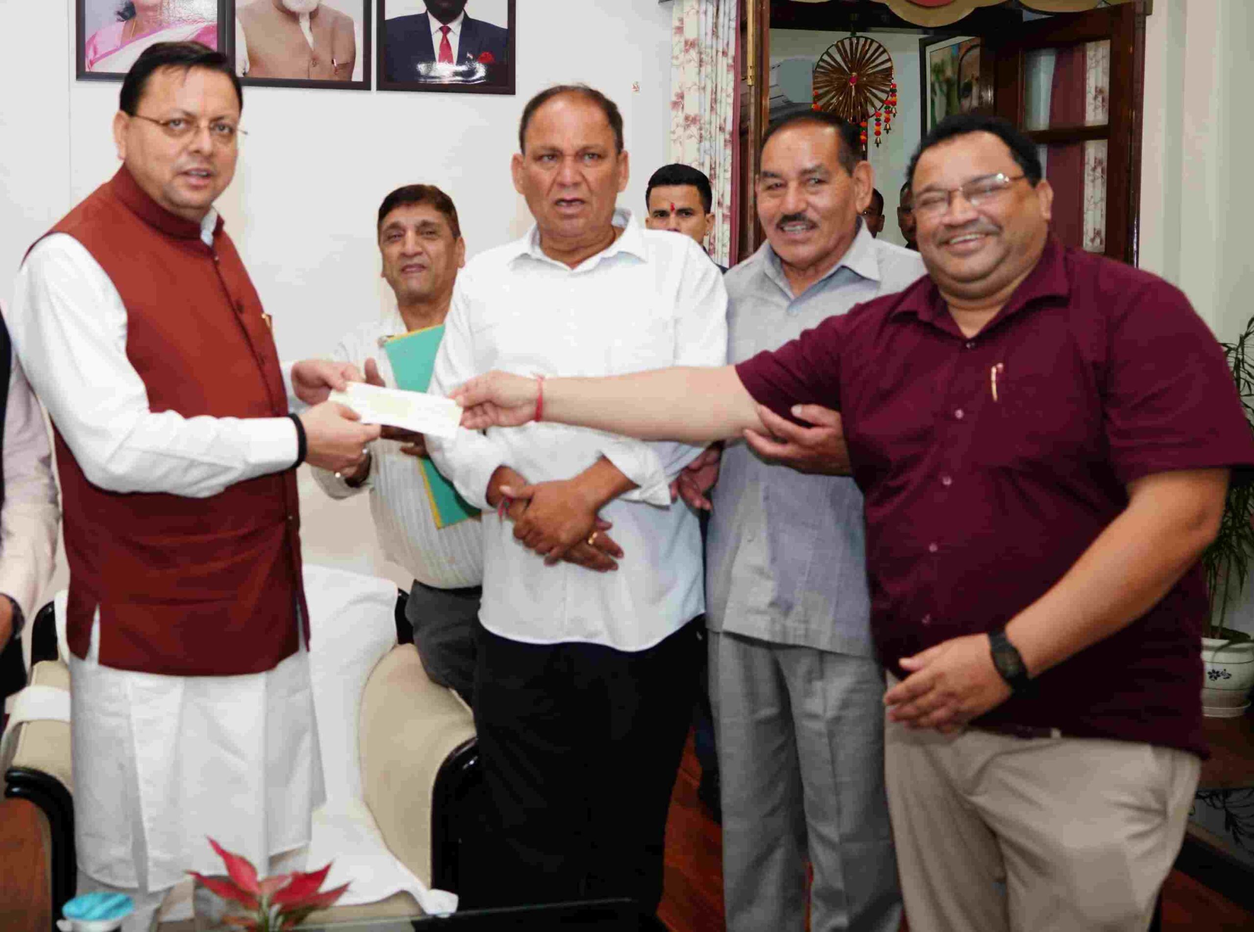 मुख्यमंत्री पुष्कर सिंह धामी से आज मुख्यमंत्री आवास, देहरादून में उत्तराखण्ड राज्य उत्पादन एवं कृषि विपणन बोर्ड के अध्यक्ष डॉ. अनिल डब्बू ने शिष्टाचार भेंट की। इस अवसर पर डॉ. अनिल डब्बू ने राज्य में विभिन्न आपदाओं से प्रभावित लोगों की सहायता हेतु मुख्यमंत्री राहत कोष में ₹1 करोड़ (एक करोड़ रुपये) की सहयोग राशि भेंट की।