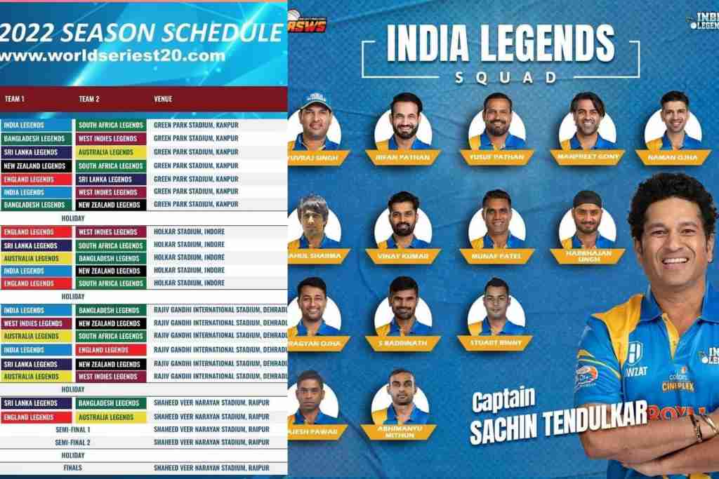 सोमवार को Road Safety World Series 2022 का पूरा शेड्यूल घोषित कर दिया गया. पहला मैच 10 सितंबर को कानपुर के ग्रीन पार्क में इंडिया लीजेंड्स और साउथ अफ्रीका लीजेंड्स के बीच खेला जाएगा. इस टूर्नामेंट के दूसरे संस्करण में इंडिया लीजेंड्स, साउथ अफ्रीका लीजेंड्स, वेस्टइंडीज लीजेंड्स, ऑस्ट्रेलिया लीजेंड्स, श्रीलंका लीजेंड्स, बांग्लादेश लीजेंड्स, इंग्लैंड लीजेंड्स और न्यूजीलैंड लीजेंड्स सहित कुल आठ टीमें भाग ले रही हैं.