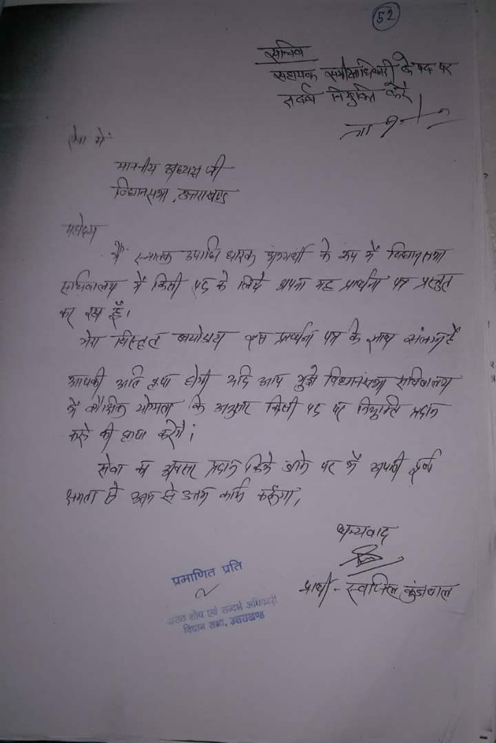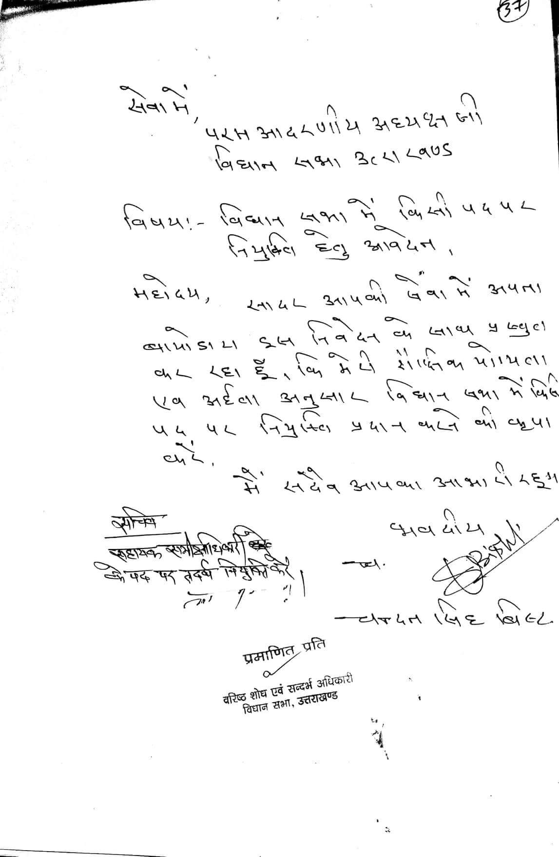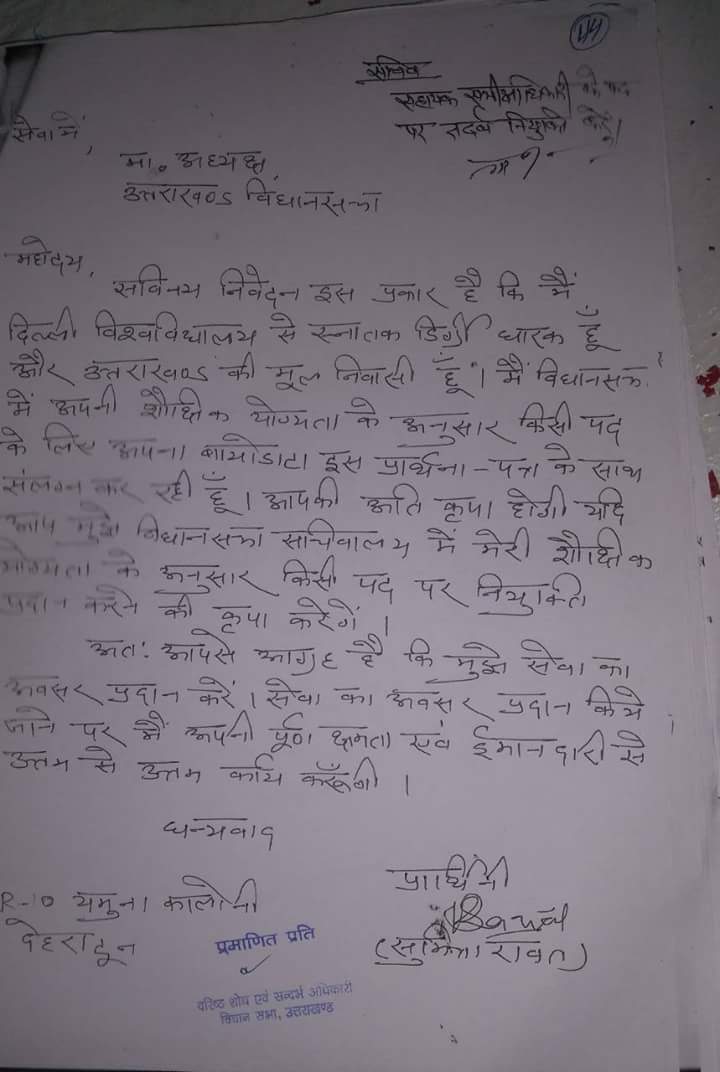 कांग्रेस शासनकाल में विस अध्यक्ष रहे गोविंद सिंह कुंजवाल के समय साधारण एप्लीकेशन पर नियुक्ति दे दी गयी। उस समय एक सीएम के स्टाफ में मौजूद शख्स की इन भर्तियों में खास भूमिका बतायी गयी। कई लोगों को नौकरी का आश्वासन दिया गया। और जिनकी नौकरी नहीं लगी उन्हें बाद में एडजस्ट करने की कोशिश की गई। यह दलाल किस्म का व्यक्ति एभी भी सत्ता के गलियारों में सक्रिय बताया जाता है।