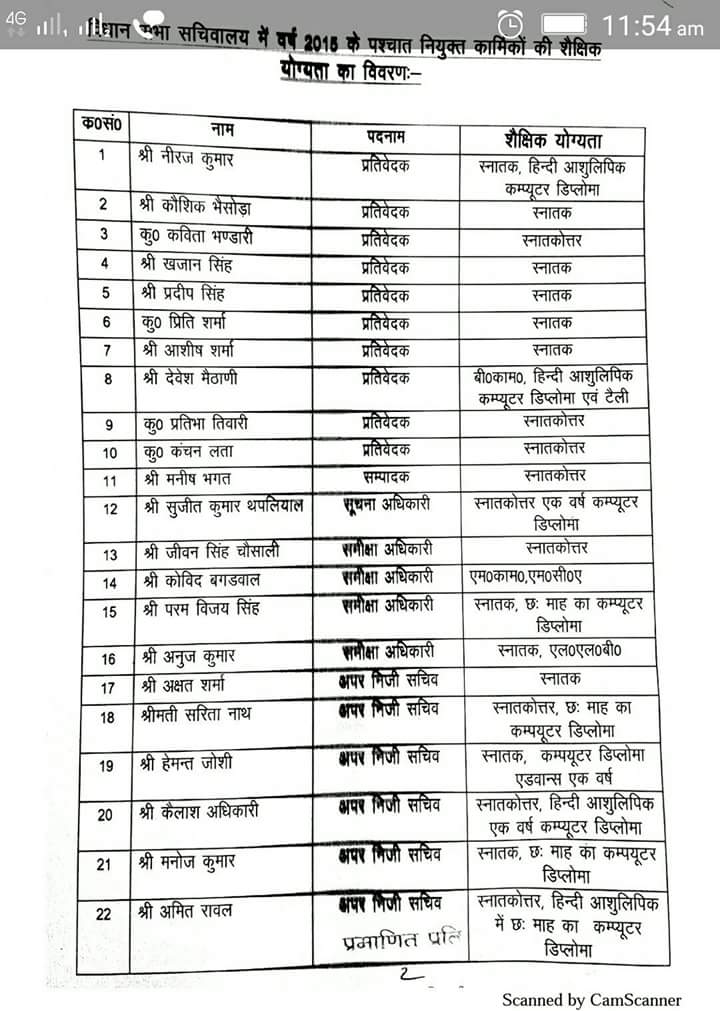 उस समय भी वित्त सचिव अमित नेगी ने इन नियुक्तियों को हरी झंडी नहीं दी। लेकिन हरीश सरकार के दबाव में फ़ाइल पर हस्ताक्षर कर दिए। तत्कालीन विस अध्यक्ष कुंजवाल के इलाके से जुड़े 8-10 लोग विधानसभा में नौकरी पा गए।