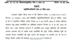 Share Tweet Share Email पशुचिकित्साधिकारी (ग्रेड-2) परीक्षा-2023 एतद्वारा सूचित किया जाता है कि विज्ञापन संख्याः A-3/DR(VO)/S-1/2023, दिनांक 12 अक्टूबर, 2023 द्वारा विज्ञापित...