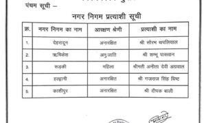 बीजेपी ने 6 नगर निगम के प्रत्याशी घोषित किए श्रीनगर आशा उपाध्याय हरिद्वार में किरण जयसल कोटद्वार शैलेन्द्र रावत पिथौरागढ़...