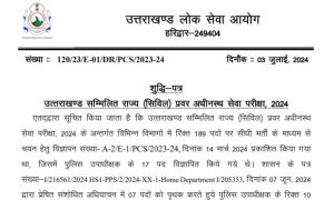 Share Tweet Share Email उत्तराखण्ड लोक सेवा आयोग ने उत्तराखण्ड सम्मिलित राज्य (सिविल) प्रवर अधीनस्थ सेवा परीक्षा, 2024 के अन्तर्गत विभिन्न विभागों...