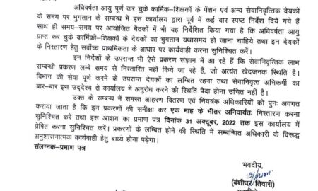 अधिवर्षता आयु पूर्ण कर चुके कार्मिक शिक्षकों के पेंशन एवं अन्य सेवानिवृत्तिक देयकों के महोदय, भुगतान के सम्बन्ध में महानिदेशक सूचना वंशीधर...