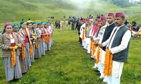 उच्च हिमालयी क्षेत्र में समुद्रतल से 11 हजार फीट की ऊंचाई पर उत्तरकाशी जिले में स्थित दयारा बुग्याल में प्रसिद्ध अंढूड़ी उत्सव...