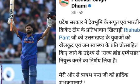 देहरादून: उत्तराखंड सरकार ने भारतीय क्रिकेट टीम के खिलाड़ी व तेजी से प्रसिद्धि पा रहे ऋषभ पंत को उत्तराखंड का ब्रांड एंबेसडर...