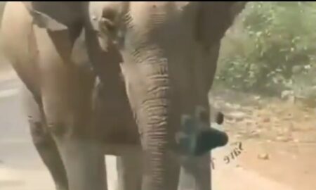 रामनगर के कॉर्बेट टाइगर रिजर्व में ढिकाला में सफारी पर जाते वक्त पर्यटकों के कैंटर पर हाथी ने अचानक हमला बोल दिया,...
