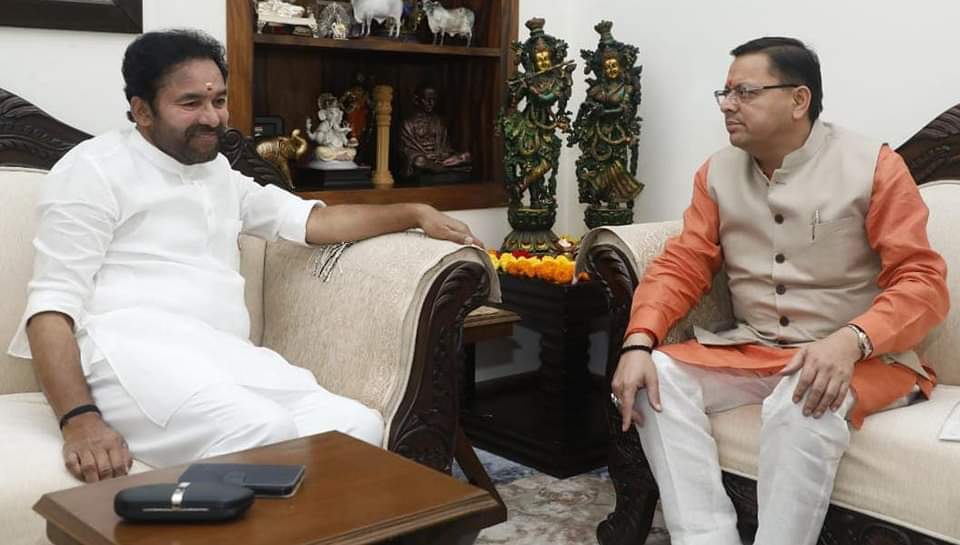 देहरादून: मुख्यमंत्री पुष्कर सिंह धामी ने आज नई दिल्ली में केन्द्रीय पर्यटन मंत्री जी.किशन रेड्डी से भेंट कर “मिनी प्रसाद योजना” व “स्वदेश दर्शन 2.0” के अन्तर्गत विभिन्न प्रस्तावों की प्रशासनिक एवं वित्तीय स्वीकृति प्रदान करने का अनुरोध किया। मुख्यमंत्री ने कहा उत्तराखण्ड पर्यटन प्रदेश के रूप में विकसित हो, इसके लिए सरकार प्रयासरत है। उन्होंने केंद्रीय मंत्री से मिनी प्रसाद योजना के प्रथम चरण में 07 प्रस्तावों पर प्रशासनिक व वित्तीय स्वीकृति देने का अनुरोध किया।